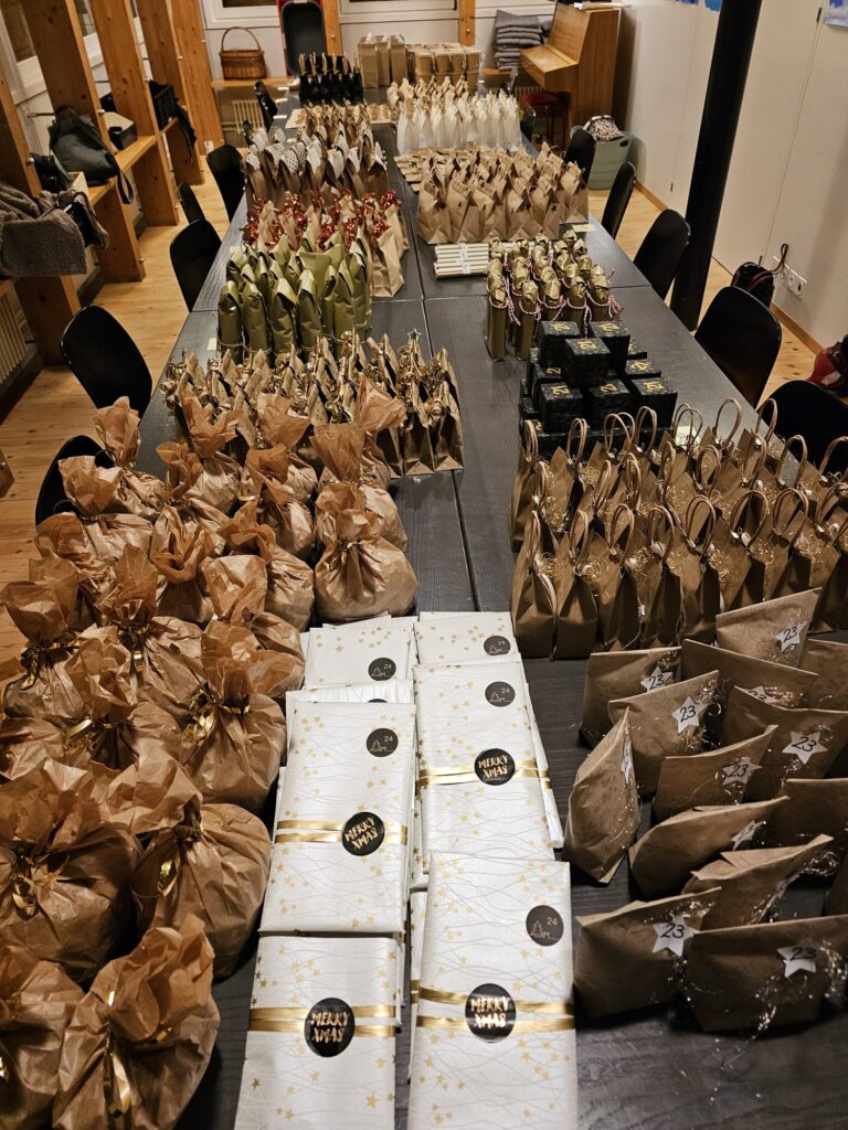 Du packst 24 gleiche Geschenke ein und versiehst sie mit den von uns vorgängig zugestellten Nummern.