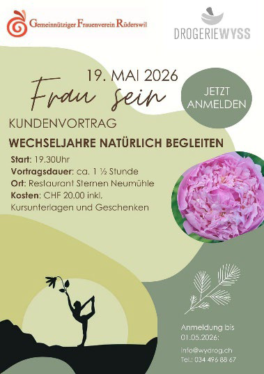 Anmelden bis: 28. September 2026 bei Drogerie Wyss, info@wydrog.ch /