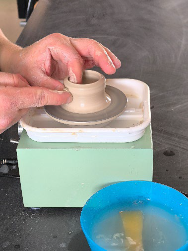 An der kleinen Töpferscheibe zauberst du in kurzer Zeit kleine Kunstwerke wie Vasen, Kerzenhalter, Espressotassen oder Schnapsgläser. Einfach ausprobieren, staunen und Spass haben – ganz ohne Vorkenntnisse bis zu 5 Objekte pro Person gestalten. Die Kreationen werden nach einer Trocknungszeit bei 950 Grad gebrannt und anschliessend durch Tamara transparent glasiert. Nach dem zweiten Brand bei 1220 Grad sind die Objekte wasserdicht und spülmaschinenfest.